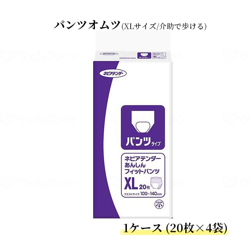 商品番号:873136xl パンツオムツ あんしんフィットパンツ XLサイズ 1ケース(20枚×4袋) 王子ネピア ウエストサイズ110〜140cm 介助で歩ける