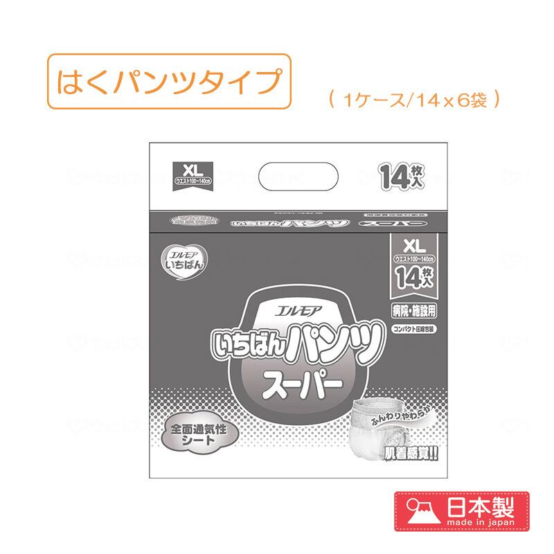 商品番号:648062xl【ケース販売】 はくパンツタイプ オムツ LLサイズ 14枚x6袋 消臭加工 ふんわりやわらか Gエルモアいちばん パンツスーパー 男女共用 介護用オムツ 失禁 尿ケア 尿もれ 介護 排泄 紙オムツ カミ商事 病院 施設用 介護用品 らくらく簡単装着