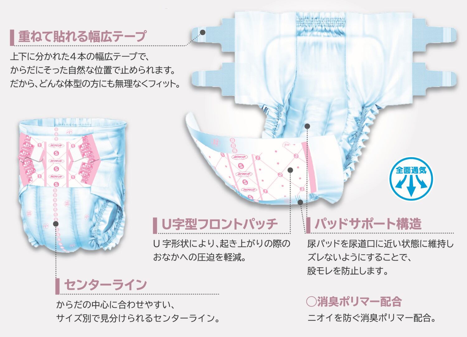 ・【介護用紙おむつ・テープタイプ】医療・福祉施設向けの品質をご自宅でお使いいただけます。
