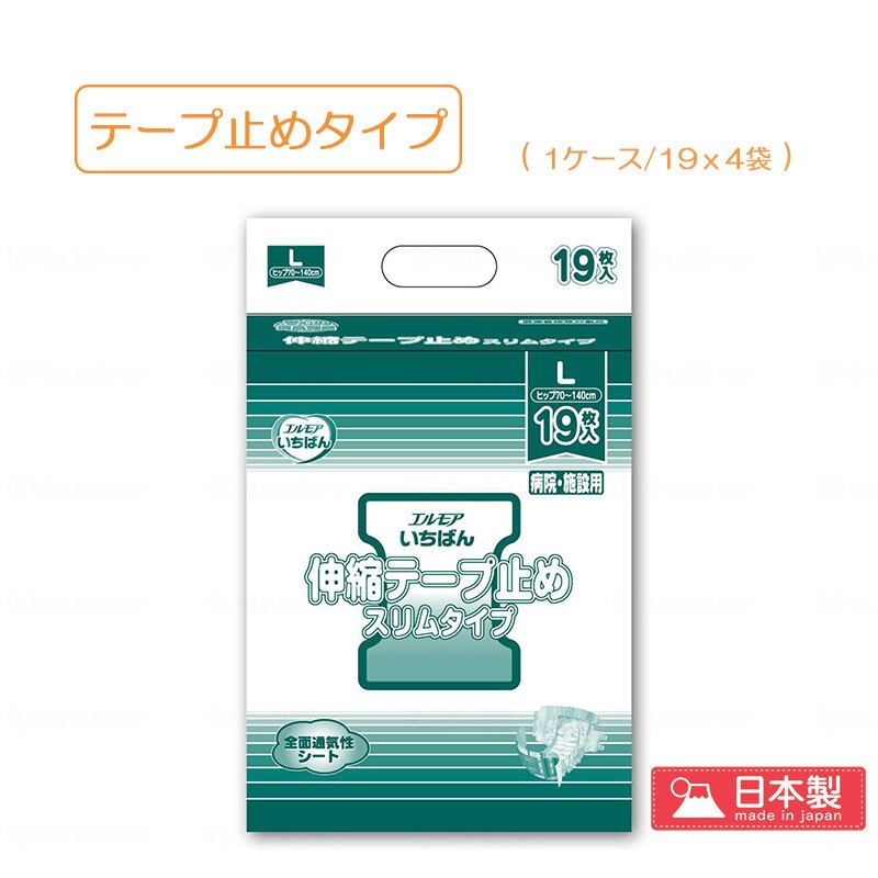 商品番号:648116l【ケース販売】 テープタイプ オムツ Lサイズ 19枚x4袋 伸縮テープ フィット 全面通気性 横モレ防止 男女共用 介護用オムツ 失禁 尿ケア 尿もれ 介護 排泄 紙オムツ カミ商事 病院 施設用 介護用品