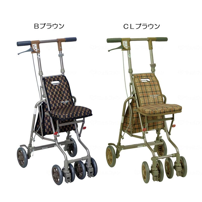 商品番号:316002 シルバーカー コンパクトタイプ 手押し車 おしゃれ 軽量 2WAY ワンタッチ 傘受け付 ハンドブレーキ付き 簡単操作 手持ち高さ調整可 安心座れ 歩行補助車 高齢者 老人 サニーウォーカーAW-Ⅲ