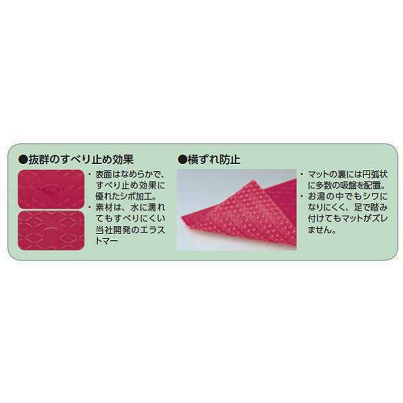 ・横ずれ防止:マットの裏には円弧状に多数の吸盤を配置。お湯の中でもシワになりにくく、足で踏み付けてもマットがズレません。